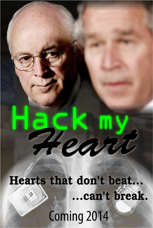 Hello, Scoochers! Earlier this week, we decided to collectively write a romantic comedy about Bush and Cheney’s strained relationship in the White House. It will be called “Hack My Heart,” and you should all feel free to contribute a scene. Our web designer, Abbie (@LinearEh), has already made an amazing movie poster:
