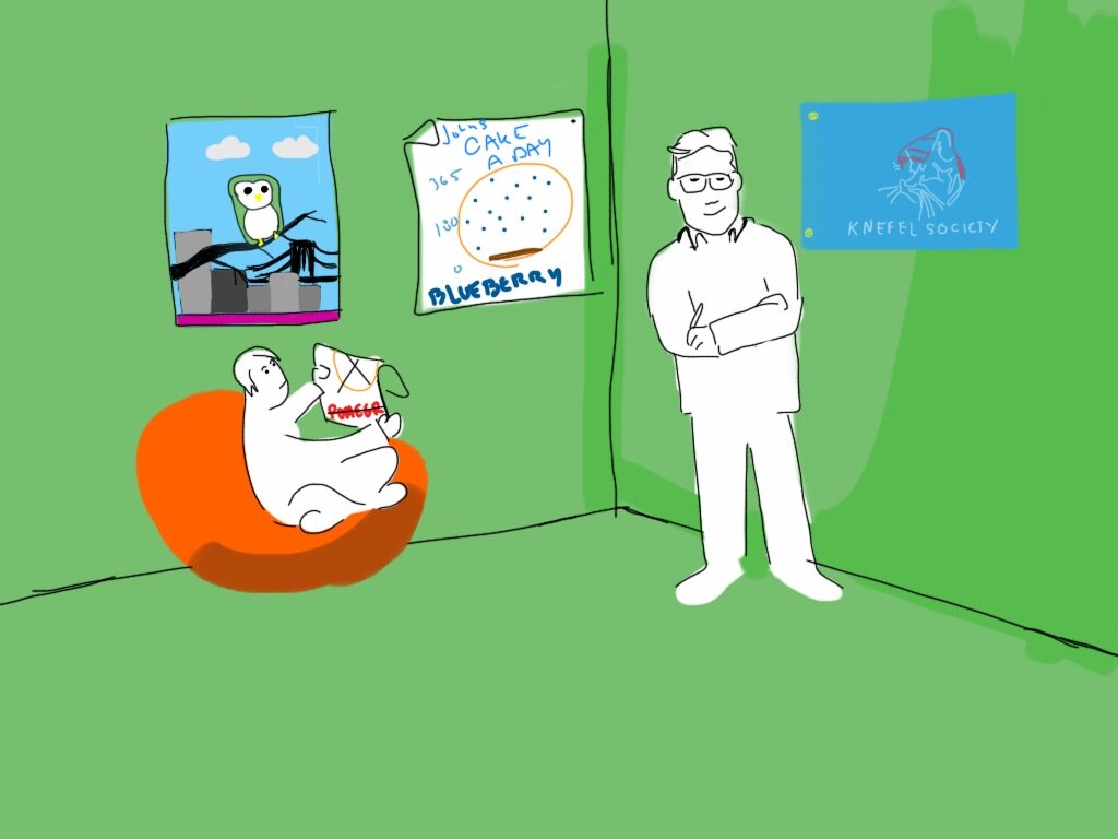 “(especially smug) John and his *pomegranate pancakes* blueberry pancake progress.