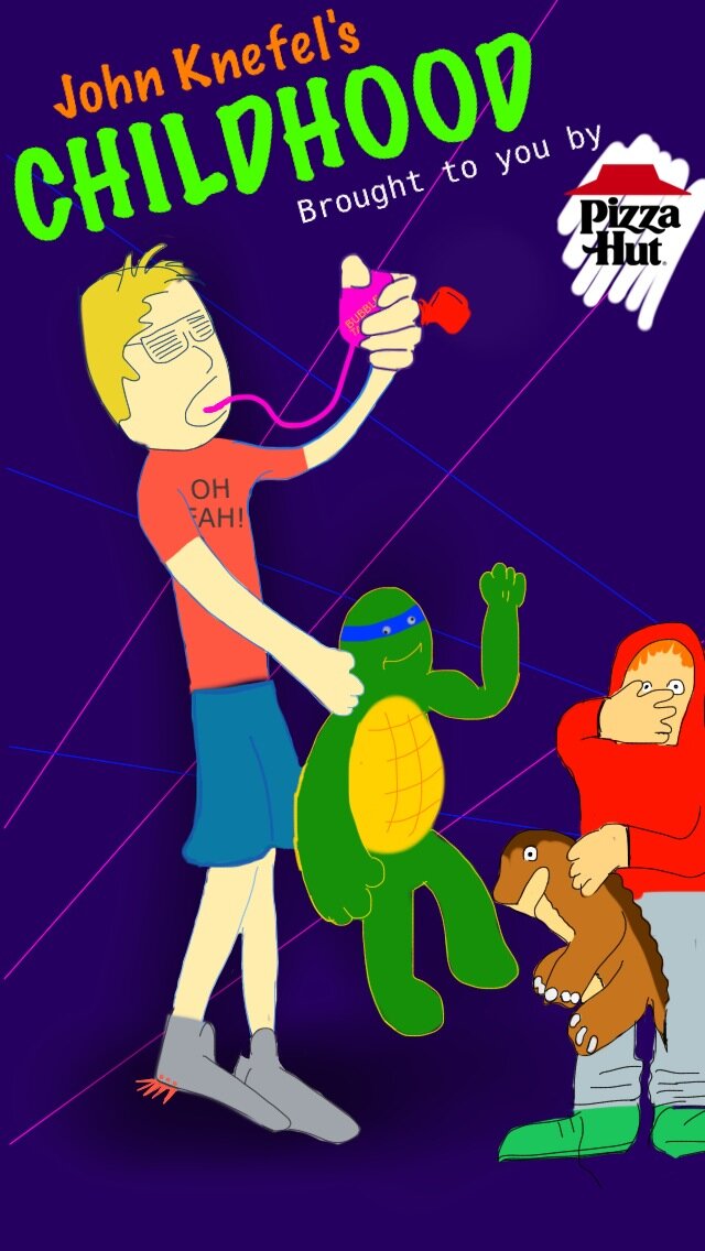 Resident scoocher artist @akcook has rendered another striking representation, this time of John’s childhood (Molly is there too). Other children of the 90s, play along to seek and find: bubble tape, ring pop, Little Foot from Land Before Time.